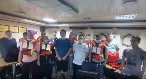 21點55分,在“海洋石油655”全體船員的努力配合下,事故船上18名人員(包含一名女性和一名兒童)全部安全轉移到了“海洋石油655”船上。