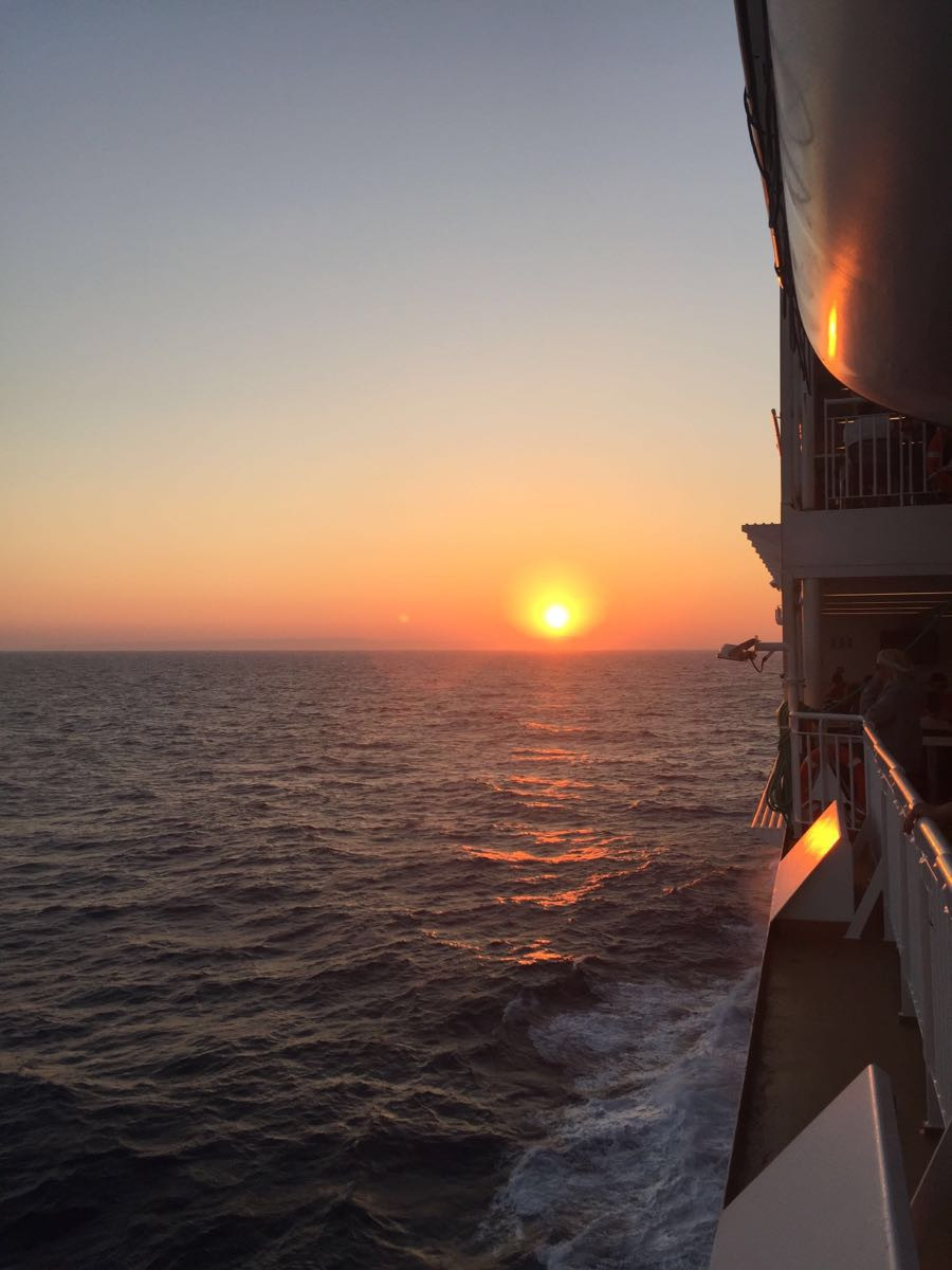 夕陽西下,海風陣陣,遠處的天邊被夕陽染得通紅,呈現出一道美麗的霞光,在晚霞的映襯下宛如一幅油畫。還別說,在太平洋這樣的海況下,吹著海風,觀賞美麗風光,確實是一種難得的愜意與享受。